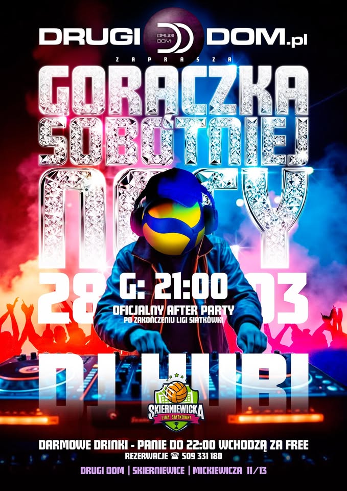 Razem z GORĄCZKĄ SOBOTNIEJ NOCY będziemy świętować ZAKOŃCZENIE SKIERNIEWICKIEJ LIGI SIATKÓWKI! A wszyscy wiemy, że siatkarze to świetni tancerze